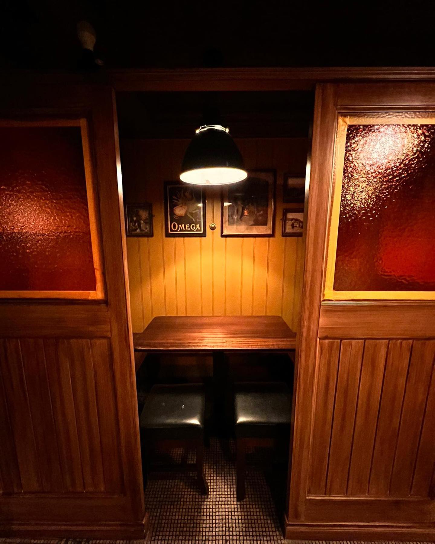 Rediscover the timeless charm of our snugs: intimate, wood-lined booths with their own service lights, offering a peaceful haven for private conversations or reflective pints. These cherished spaces sit alongside open-plan areas, where the energy rises with live music, friendly banter, and the clink of glasses late into the evening.